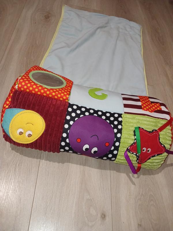 Дитячий килимок з валиком в дуже хорошому стані. Ідеально підходить для діток 3+ міс. Особливості: - розмір килимка: 75х42 см; - приємний на дотик, плюшевий текстиль, наповнювач килимка і валика - синтепон; - різнокольорові сегменти; - безпечне люстерко; - шелесткі елементи.