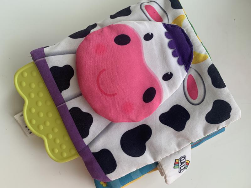 Книга мʼяка з рухомими елементами, пищалкою яку можна прати з прорізувачем для зубів на липучці. З нею вашій дитині буде цікавіше знайомитись з тваринками