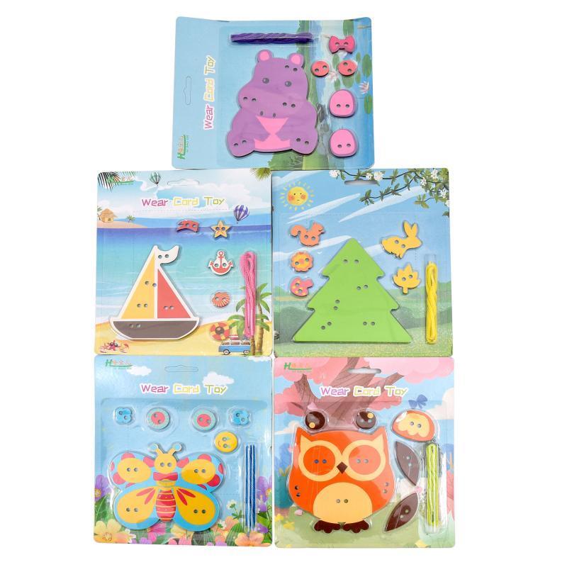 Іграшка "Шнуровка", мікс видів. Для навчання та розвитку навичок у дітей - гудзики-детальки та шнур в наборі. Вік - від 3 років. Матеріал - дерево. Паковання — лист. Розмір - 21х18 см.