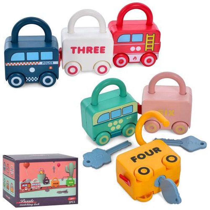 Гра для малюків "Автомобіль-замок", 6 видів. Матеріал - пластик. Упаковка - коробка. Розмір - 13х10х8 см.