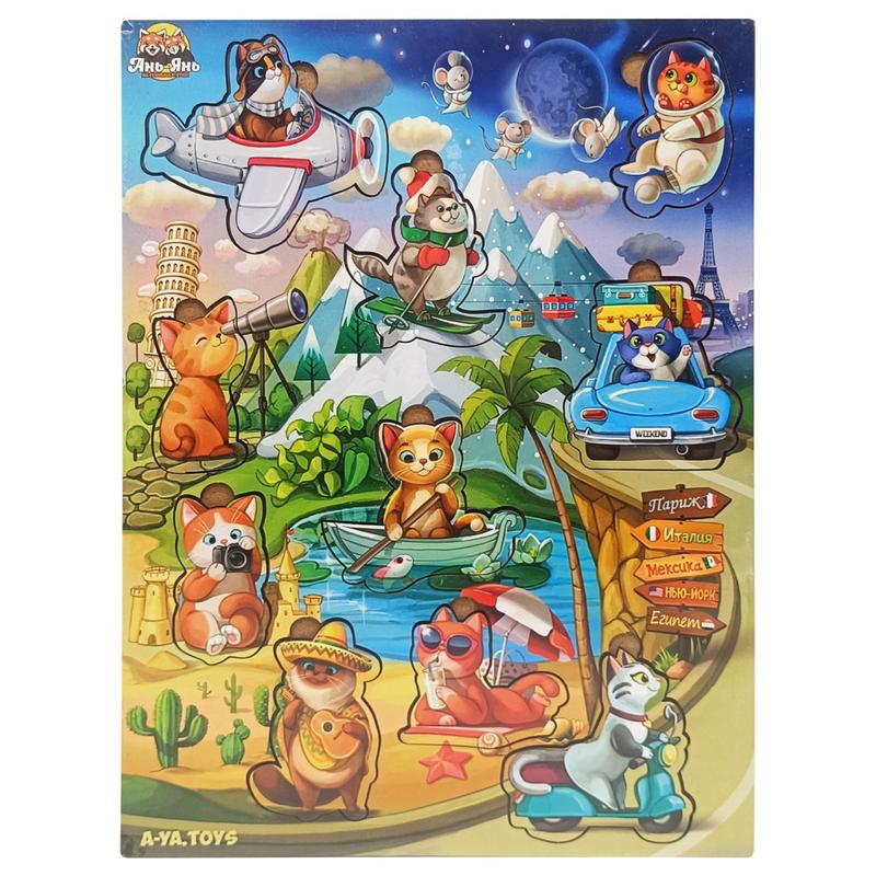 Дерев'яний пазл-вкладиш "котики -2 з літачком" (псд129) psd129