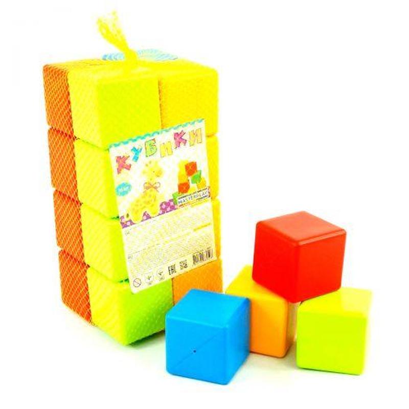Різнокольорові кубики. У наборі є 16 кубиків. Виконано з якісного пластику. Для дітей від 3-х років.