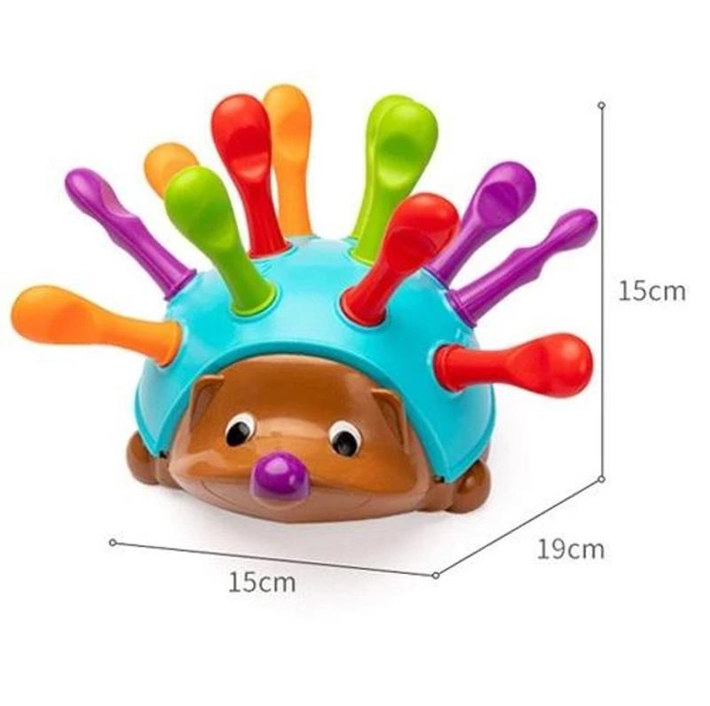 Ежик растерял все свои иглы. Помоги ему их собрать! С виду довольно простой сортер таит в себе развитие многих навыков: - сортировка по цвету. Предложите малышу разместить иголочки одного или нескольких цветов. - развитие мелкой моторики. Размещая трубочки в отверстия на спинке ежика, малыш развивает мышцы руки. - развитие внимания. Предложите малышу собрать некоторые последовательности. - проявление творчества. Малыш может собирать узоры по своему усмотрению. - изучение азов счета. Состав набора: - 12х цветных трубочек-колючек - 1х ежик-сортер, состоящий из двух частей - Эластичные пластиковые трубочки с легкостью помещаются внутрь ежика, решая вопросы с хранением. Диаметр ежика составляет 15 см.