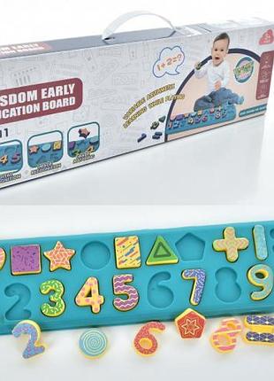 Іграшка - сортер розвиваюча. Розмір - 39х11 см. Цифри, математичні знаки, фігурки, наліпки в наборі. Матеріал - пластик. Паковання — коробка. Розмір - 40,5х4х12,5 см.