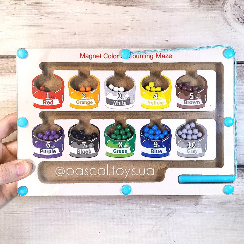 Детский магнитный лабиринт "английские цифры и цвета", развивающая доска, сортер головолом...