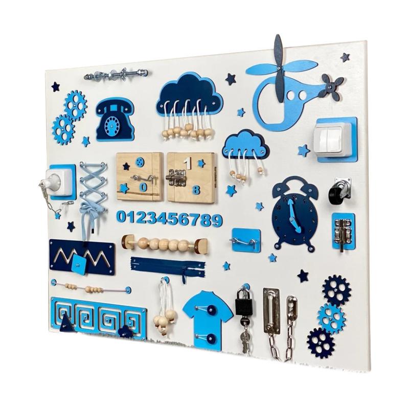 Развивающая игрушка бизиборд по методике монтессори tg270035370, 80х60 см, синий