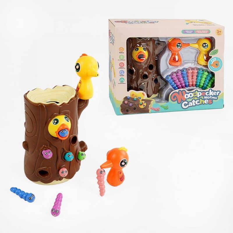 Магнітна гра BWN 004 (24) дятли, магнітні черв'ячки, у коробці Захоплива магнітна гра для найменших, яка здатна зацікавити маленьких гравців із перших секунд! Гра представлена? у формі дерева, у якому живе сім'я дятлів. Удень молоді батьки літають у пошуках їжі — маленьких черв'ячків, які так люблять пташенят. Головним завданням гравця буде нагодувати птенець. Гра вирізняється цікавим дизайном і яскравою колірною гамою. До комплекту входить дерево з ігровими отворами, 2 фігурки дятлів із магнітним дзьобом і 10 кольорових черв'ячків. Дитині обов'язково сподобається підхоплювати маленьких шкідників і годувати маляті, а другий гравець додасть грі змагальний елемент. Особливості: - цікавий дизайн іграшки, виготовлений у формі дерева; - вирізняється яскравим забарвленням; - містить фрагмент дерева з отворами, 2 фігурки дятлів, 10 кольорових черв'ячків; - магнітні елементи на дзьобах птахів і черв'ячках; - виготовлена з первинного пластику та не містить шкідливих барвників; — гра сприяє розвитку дрібної моторики рук, спритності та наполегливості.