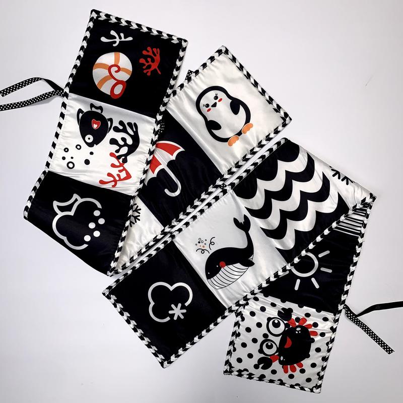 Мʼяка двостороння контрастна книжка-бортик з картинками для немовлят 0-4 міс.