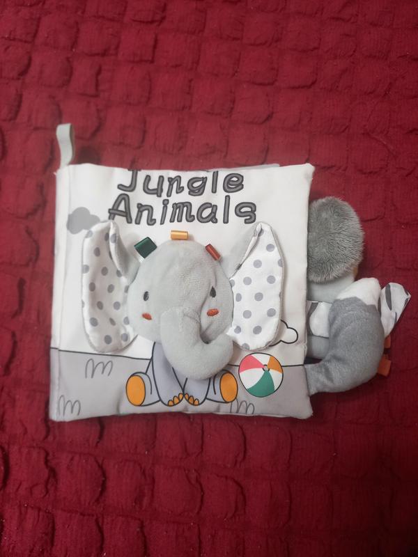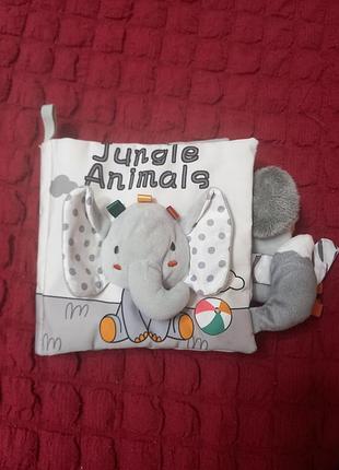 интерактивная игрушка книжка для малышей с рождения, книга мягкая, слоник и хвостиком когда пищает, хвостиком тигра дзеленчит, и более шуршащие шелестят