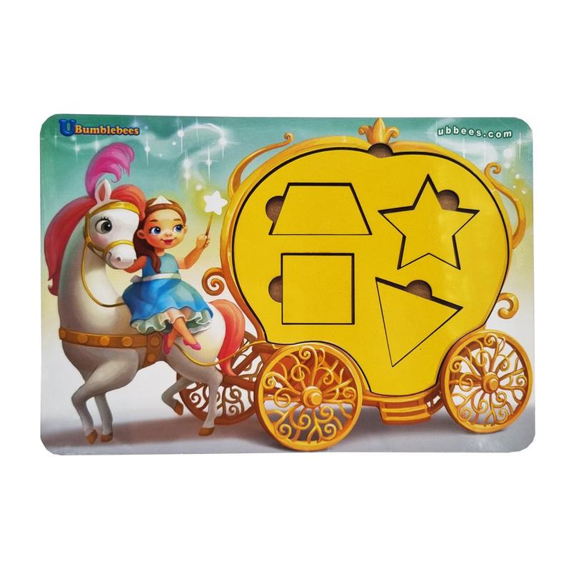 Размеры: 23 х 16 см. В наборе идут 26 карточек с визуальными заданиями. Развивающая игра в виде кареты с окошками из разных фигур. Карета – это сменные основы 5-ти цветов. Малышу необходимо вставить разноцветные фигуры в карету нужного цвета по подобию. Также из фигур можно выложить много разных узоров, персонажей, абстракций. Эта игра – отличный помощник в изучении фигур, счета и цветов. Предложите ребенку придумать для феи имя, и тогда играть станет еще интереснее.