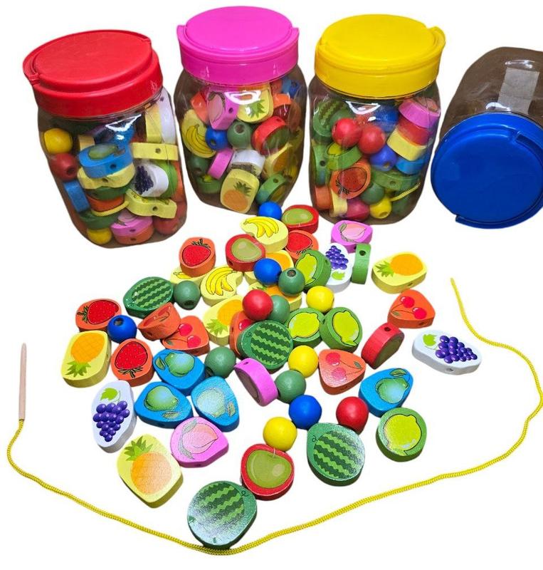 Дитяча розвиваюча іграшка дерев'яний бісер для вивчення різних фруктів (ціна за одну банку...
