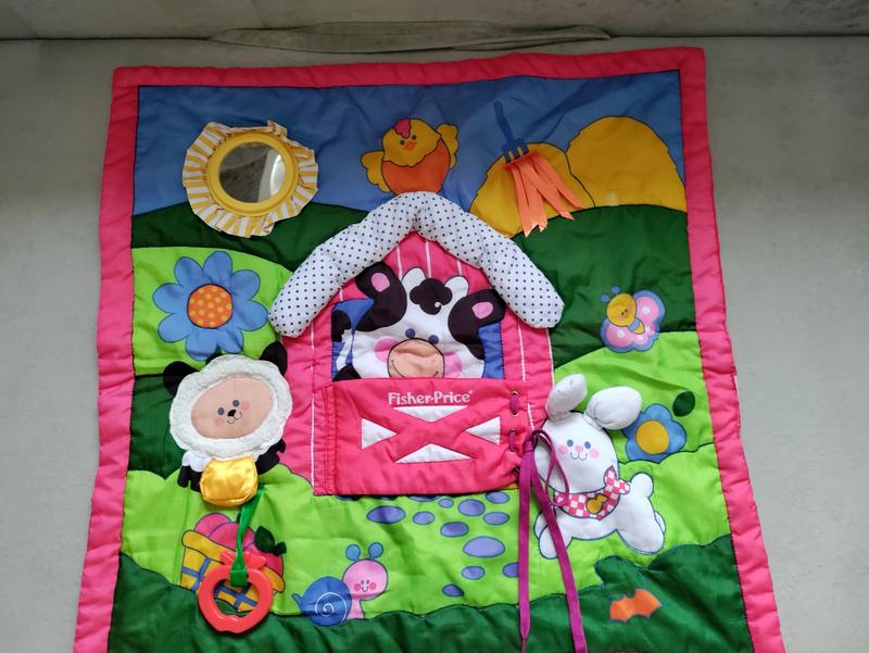 Яркий веселый коврик от Фишер прайс с разны́ми тактильными ощущениями для развития малыша.