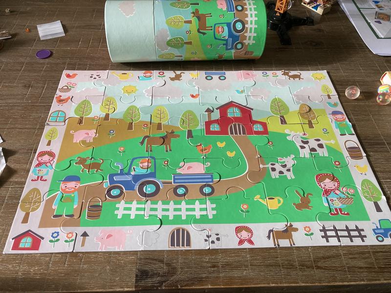 Пазл дитячий 30 шт. Складався разів пʼять. Є незначні недоліки - затертості картону у місцях сполучення.