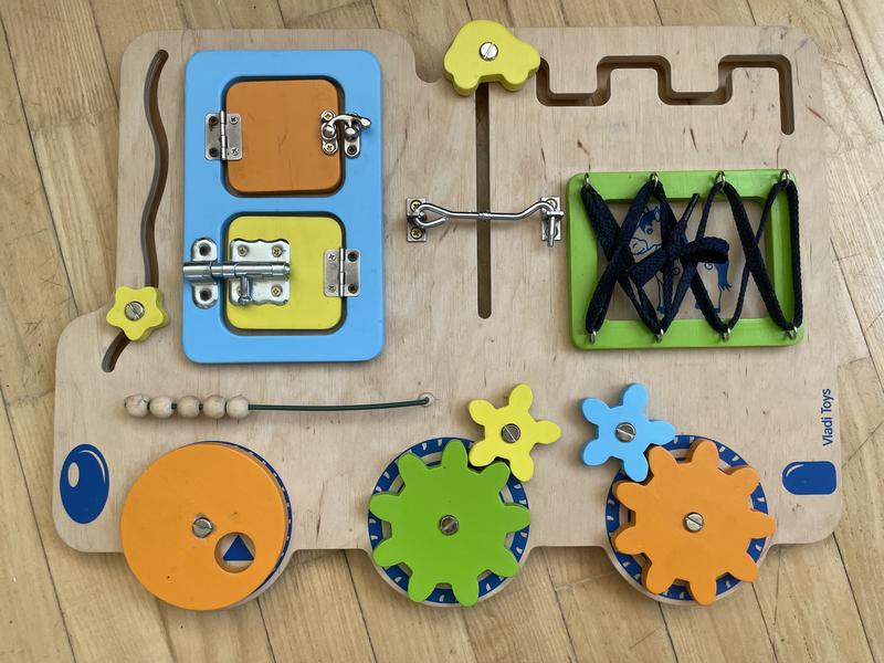 Бізіборд в гарному стані , користувалися , але охайно . Все поацює , дефектів немає . Маю коробку , трошки вона теж не ідеальна але ціла . За додатковими питаннями пишіть