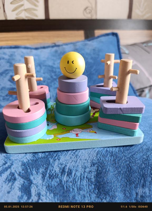 Деревянный сортер с интересными заданиями детям интересно искать возможности надевания фигурок. Состояние игрушки идеальное, все детали на месте