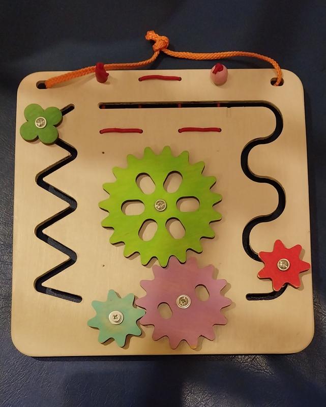 Проста та легка бізідошка стане чудовим варінтом як розвивальна іграшка для малюка. На цій дошці розташовані різні елементи, які мають дуже широкий функціонал. Лабіринти допомагають вчитися орієнтуватися у просторі та розвивають здатність сидіти на одному місці, концентруючи увагу. Шестерні ж навчають логіці, а їхні різноманітні кольори сприяють вивченню нових відтінків. Годинник, числа, стрілки. Придбавши бізідошку ви інвестуєте у безпеку, щастя та зайнятість свого малюка, шляхом його саморозвитку. Розміри: 25×25см. Матеріал: фанера. Вживане, в дуже хорошому стані! Дивіться інші оголошення бо Багато развиваючих іграшок