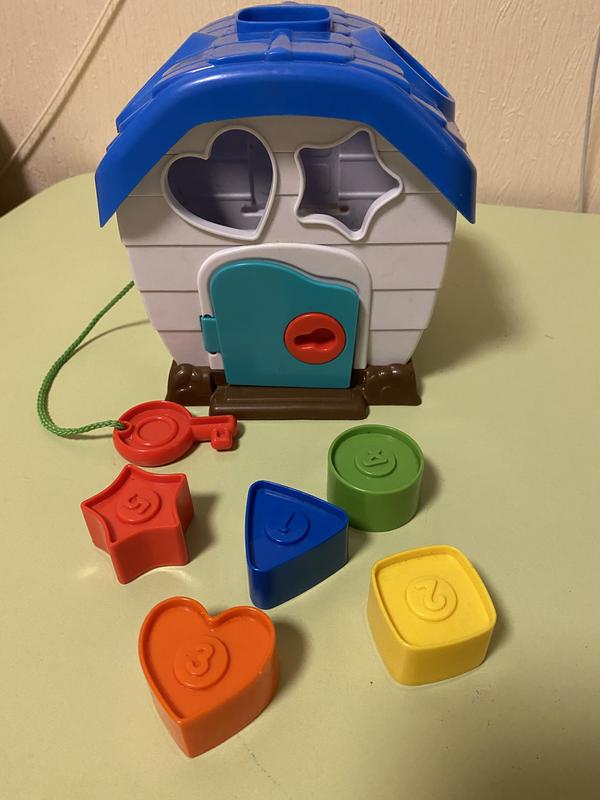 Іграшка, яка обовʼязково зацікавить малюка, дверцята закриваються ключем, вироблений з якісного пластику, 5 елементів має геометричну форму та номерацію. Вік від 12 місяців. В гарному стані, без сколів, тріщин, кольори яскраві