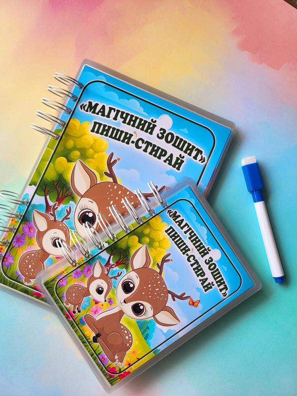 Зошит пиши-стирай Магічний зошит 30 сторінок різноманітних цікавих завдань маркер в подарунок А5 формат - 420грн А6 формат - 320грн кожна сторінка заламінована, друк на фотопапері якісними оригінальними фарбами також в асортименті є багато різних зошитів пиши-стирай, ігри на липучках та інші розвиваючі ігри