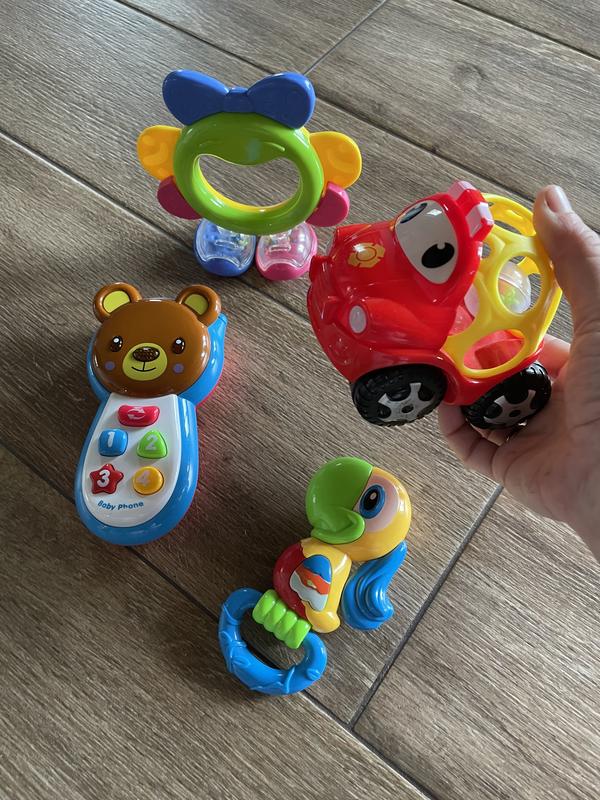 Продам набір іграшок для малят. Телефон музичний, машинка з шаріком, колко дівчинка з рухомими деталями, брязкальце папужка.
