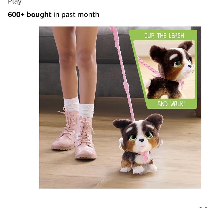 Включає: 1 інтерактивну іграшкову собаку, 1 поводок. Компанія з домашніми тваринами на ходу: відчуйте радість догляду за домашніми тваринами з інтерактивною іграшкою furReal Walk-A-Lots Bernedoodle. Puppy Love: познайомтеся з дизайнерським собакою. Чарівний Бернедудль має надзвичайно м’яке коричневе, біле та чорне хутро, блискучі зелені очі та милий рожевий комірець. Гуляйте та розмовляйте: прив’яжіть нашийник цього милого цуценя до повідця та обережно штовхайте бернедудла по дому, щоб побачити його стрибкуючу ходьбу – разом із хитанням голови та чарівними звуковими ефектами цуценяти. Надихайте уяву: ця дитяча іграшка, створена для інтерактивної гри, імітує поведінку справжньої собаки. Bernedoodle катається по плоских поверхнях, гавкає, бризкає, «співає» і покритий м’якою шерстю, що робить догляд за цуценям дуже веселим.