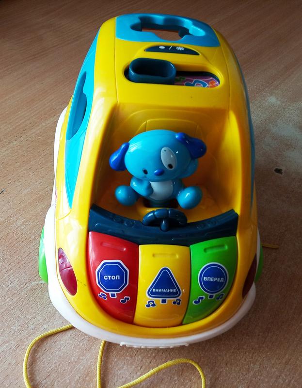Продам розвиваючу-інтерактивну (музичну зі звуковими ефектами) іграшку сортер, довжина-24см, ширина-16,5см, висота-17см. (машинка-каталка-конструктор) з безпечного для діток дуже міцного - гарної якості матеріалу, у відмінному стані, всі фігурки в наявності (100% повний комплект), дивіться фото