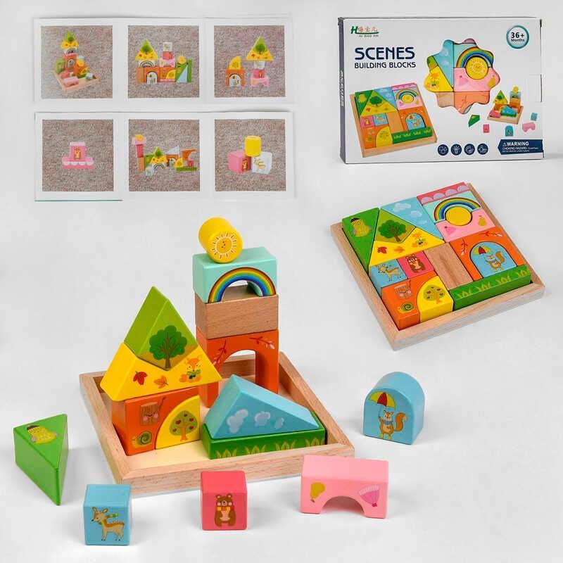 Деревянная логическая игра "лесное приключение", набор из 16 строительных блоков