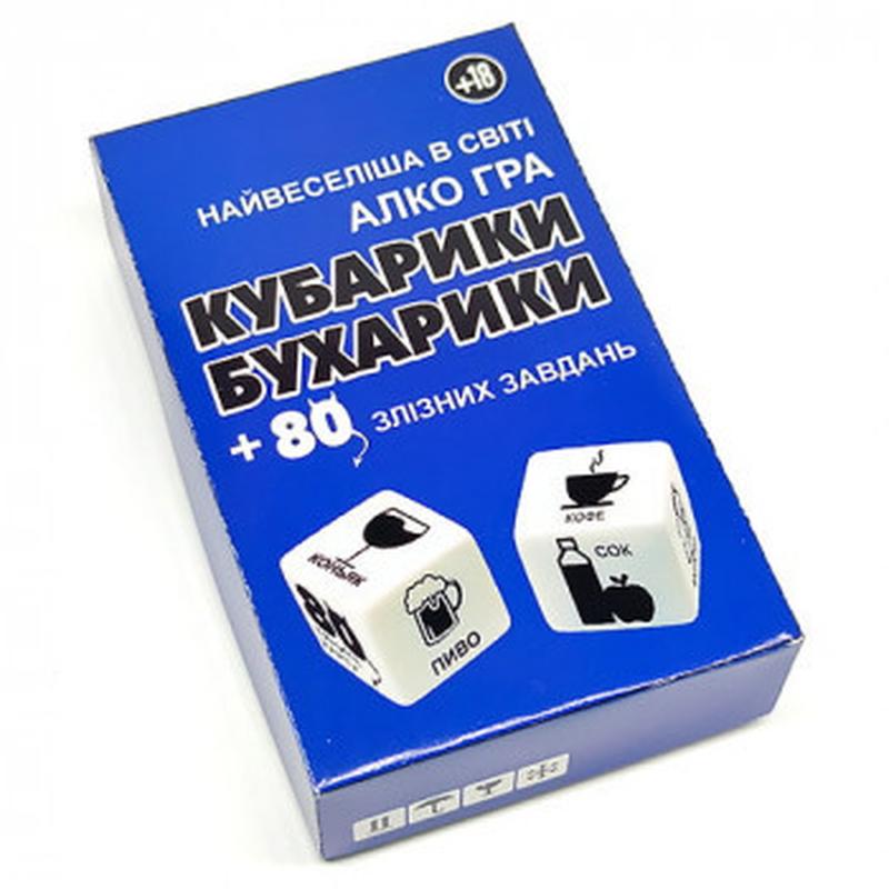 Кубарики бухарики – це не просто оригінальний подарунок, це ще й вірний помічник у створенні веселого настрою на будь-якому святі. Це одна з рідкісних ігор, яка, незважаючи на те, що заснована на алкоголі, дозволить учаснику залишитися абсолютно тверезим. Ця алкогра користується популярністю як на великих, так і на маленьких вечірках, тому що в першому випадку вона дозволяє створити розслаблену атмосферу і допомагає познайомитися один з одним, а в другому - не дає занудьгувати в маленькій компанії. Розмір, мм: 130 х 80 х 40 Український та російський варіант