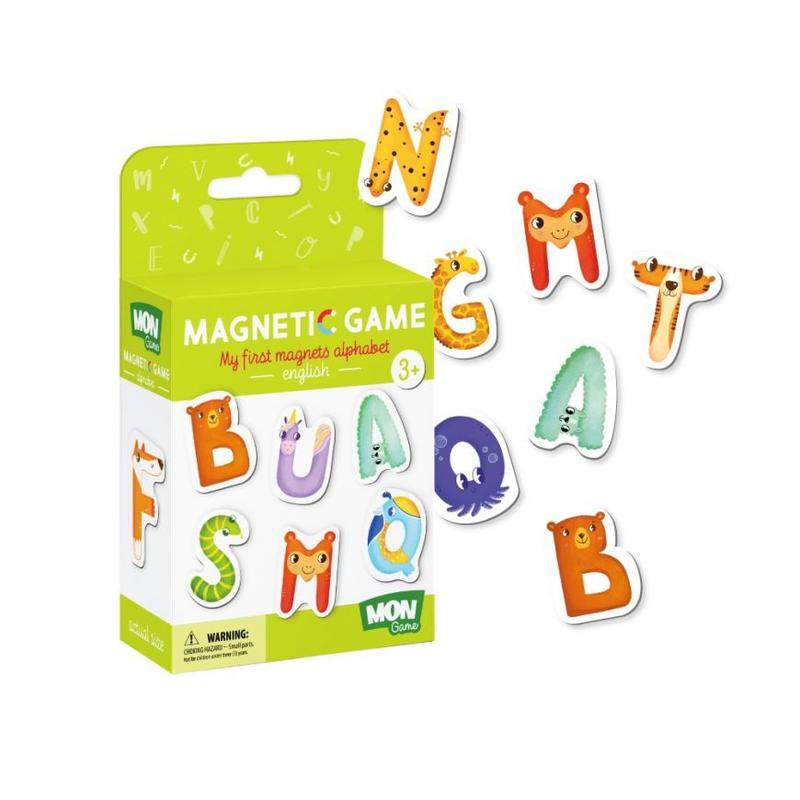 Вивчаємо англійську з яскравими магнітами. Кожен пазлик - одна буква, що за формою і кольором нагадує тварину, назва якої починається з потрібної літери. Це подвійна користь – дитина вивчає літери алфавіту та назви тварин. Магнітні ігри MON game – новий формат ігор, що розвивають, від улюбленого бренду. Все що для них потрібно – металева поверхня та самі магніти, які так добре кріпляться до неї.
