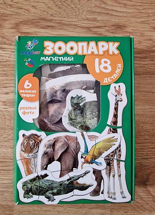 Магнітний пазл з 6-ма великими тваринами, 18 деталей