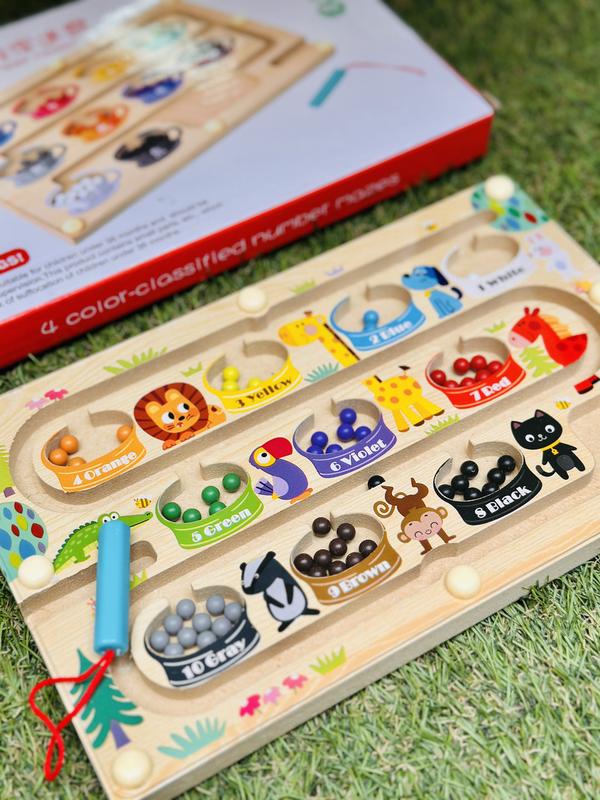 🧲 Дерев'яна магнітна дошка -- це захоплива навчальна гра для дітей, яка поєднує навчання та розвагу! За допомогою спеціального магнітного стилуса малюк проводить кульки та збирає їх у відповідні комірки за кольорами. 🎨 ✨ Ця гра допомагає: - тренувати дрібну моторику; - розвивати логічне мислення; - формувати уважність та посидючість. 📏 Розмір дошки: 23х14.5х1.3 см 🔢 У комплекті: магнітний стилус, сортер магнітних кульок з кольорами та цифрами, англійські назви кольорів. 🎉 Ігровий процес приносить море задоволення та користі для маленьких дослідників! 🐾