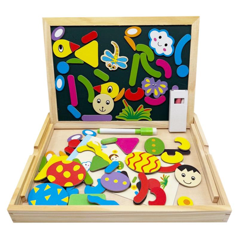 Детская двусторонняя магнитная доска MD 0815C (2в1) Эта двухсторонняя магнитная доска - настоящее сокровище для развития творческих способностей ребенка! Она объединяет в себе сразу две полезные игровые поверхности, что делает ее универсальным инструментом для обучения и игр. Ключевые особенности: Две поверхности для творчества: Белая магнитная сторона: идеально подходит для рисования маркером (не входит в комплект) и крепления магнитных фигур (не входят в комплект). Черная грифельная сторона: предназначена для рисования цветным мелом. Функциональность: доска имеет удобный пенал для хранения мелочей и губку для легкого стирания. Материал: изготовлена из качественного дерева, что гарантирует ее долговечность и безопасность для ребенка. Развивающая игра: способствует развитию мелкой моторики, воображения, творческого и логического мышления.