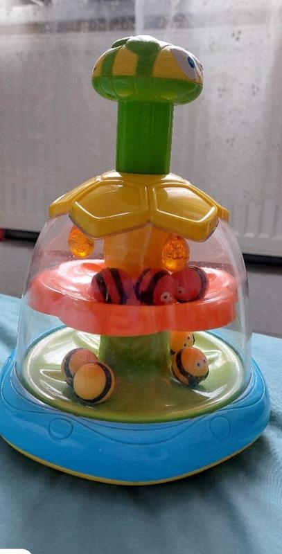 Сенсорна іграшка "Dizzy Bees Activity Spinner". • має прозорий купол з бджолами, що котяться всередині; • щоб активувати потрібно натиснути на велику бджолу зверху (розвиває моторику)! • при натисканні пдатформи обертаються , а бджоли всередині починають котитись та видавати звуки; • іграшка сприяє розвитку координації, дрібної моторики та сенсорного сприйняття! Стан чудовий! На торгівельних платформах такі Іграшкивід 500грн і >. Пересилаю + 25