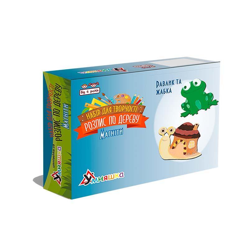 Набір дитячої творчості Умняшка — Магніти-равлик і жаба Яскравий і добрий творчий комплект для розпису дерев’яних фігурок у вигляді равлика та жаби. Це ідеальна ідея для тихого сімейного дозвілля або творчого заняття вдома — простий процес, а результат дарує радість і відчуття власного досягнення. Особливості набору: - Легкий у використанні: навіть початківці швидко освоять техніку розпису. - Розвиває дрібну моторику, посидючість і творче мислення. - Заохочує експерименти з кольором і декором, дозволяючи створювати унікальні образи. - Готові магніти стануть яскравим акцентом на холодильнику або чудовим подарунком ручної роботи. Чому варто обрати цей набір: він дарує дитині відчуття творчої свободи, допомагає розвиватися і приносить багато усмішок під час спільної роботи. Простий, приємний і надихаючий спосіб провести час з користю.