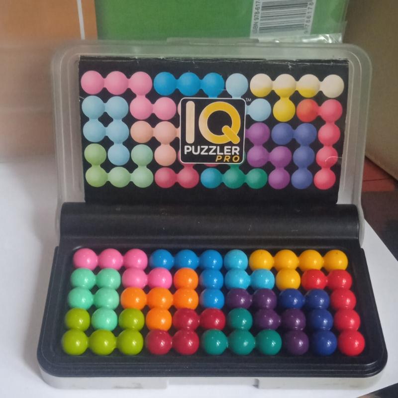 Настольная игра SmartGames IQ Puzzler Pro (также известная как Smart Games IQ Профи). Эта игра включает 12 разноцветных фигур, которые нужно разместить на игровом поле согласно одному из 120 задач, входящих в комплект. Задания имеют три режима игры: 2D-головоломки на верхней части доски, 2D-головоломки на нижней части доски и 3D-головоломки в виде пирамиды. Игра развивает логическое и пространственное мышление, а также навыки планирования. Игра предназначена для одного игрока в возрасте от 6 лет. В комплекте есть буклет с заданиями и их решениями.