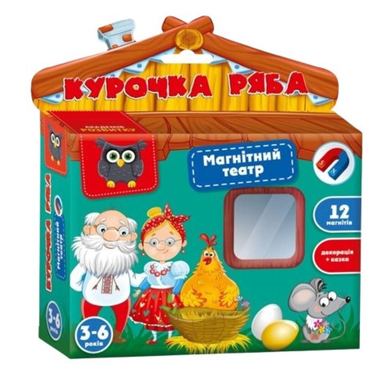 Гра настільна магнітний театр Академія розвитку "Курочка Ряба" VT3206-31 (укр) Зробіть справжню виставу прямо на своєму холодильнику. Відомі казкові герої на магнітах та декорація дозволять дитині відчути себе частинкою казкової історії. Познайомте маля з дідом, бабою та курочкою рябою. Комплектація: 13 магнітів, декорація+казка. Вік: 3-6 років.