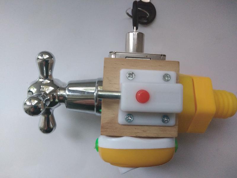Міні бізікуб. Наявний замок з ключами, перемикач кнопковий, вертушка, колесо, перемикач роликовий