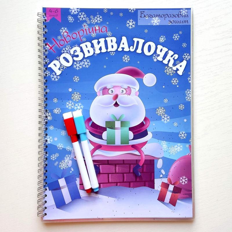 🧑🎄 *НОВОРАЧНАЯ РАЗВЫВАЛОЧКА* 📒Многоразовая тетрадь ☺️Возраст 4-6 лет, 📖30-игровых страниц 🤓Ребенок будет развивать логику, внимание, образное мышление, мелкую моторику, графомоторные способности, подпольчатые связи. Учимся считать, рисовать 🖍️2 Маркери в комплекті
