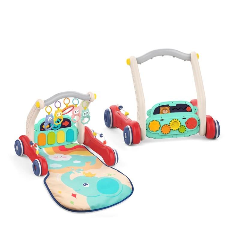 Детский многофункциональный развивающий коврик ходунки 2в1 с музыкой + съёмное пианино + п...