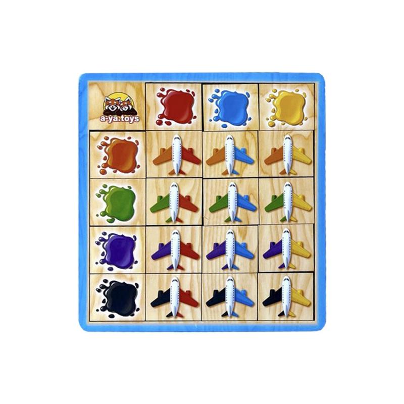 У наборі 30 плашок для сортування. Як грати: потрібно розташувати літаки згідно плашок з кольорами. Зліва та зверху знаходяться плашки, які відповідають за колір лівого та правого крила літака. Якщо малюк розташовує кольори так, що не можете знайти потрібну плашку, значить літачок потрібно перевернути (вивчення напрямків). Якщо дитина все зробила правильно, то вручаєте йому плашку з веселкою. Усі деталі взаємозамінні - це означає, що щоразу можна змінювати умови гри. 1. Розвиток логічного і понятійного мислення 2. За допомогою такого методичного матеріалу, діти пізнають навколишній світ. 3. Розвивається дрібна моторика. Вставляючи певним чином детальки, чудово тренуються пальчики. 4. Працює зорова пам'ять, тренується увагу і посидючість.