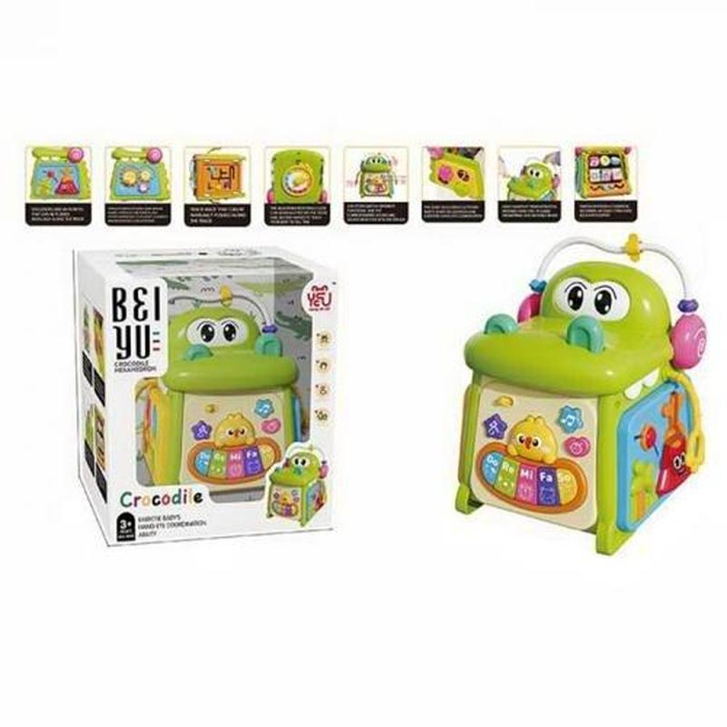 Дитячий розвиваючий музичний бізікуб Urmywo Крокодил - захоплююча іграшка, яка подарує малюкові години веселих ігор та корисного навчання! Яскраві кольори, різноманітні елементи та безпечні матеріали роблять його чудовим вибором для раннього розвитку дитини. Кожна грань куба – це окрема ігрова панель із різними завданнями. Малюк зможе вивчати ноти та звуки на музичній панелі, розвивати логіку за допомогою лабіринту та сортувати форми, підбираючи відповідні деталі. Також у бізікубі є крутилки з літерами та зображеннями тварин, годинник для знайомства з поняттям часу, елементи, що рухаються, і зручні гризунці. Всі деталі розроблені з урахуванням безпеки, а різноманітні текстури та механізми сприяють розвитку дрібної моторики та тактильного сприйняття. Urmywo Крокодил - це не просто іграшка, а цілий центр для маленького дослідника! Ідеальний подарунок для захоплюючих ігор та першого знайомства зі світом звуків, форм та рухів.