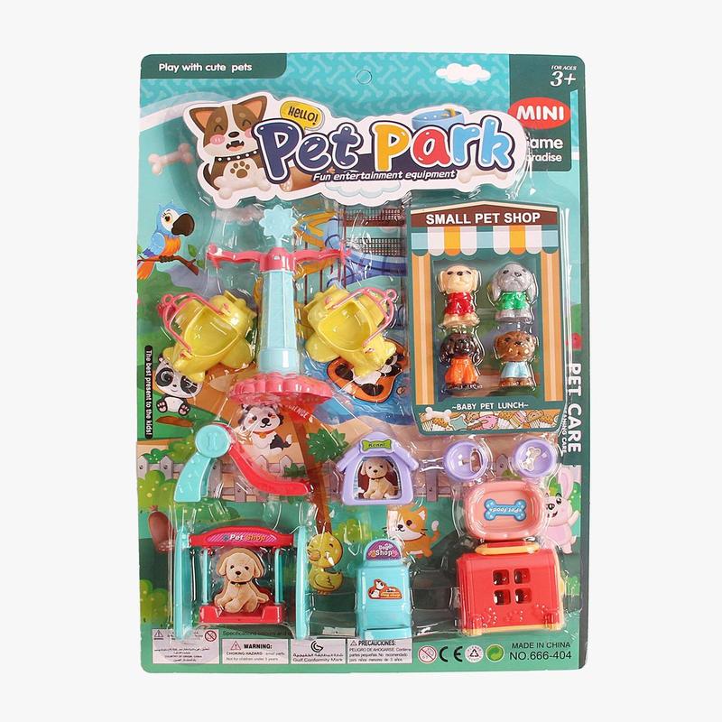 Все дети любят маленьких животных и с радостью поиграют с ними. Игрушечный набор погрузит игрока в тематический парк, где все зверушки вышли на прогулку. В наборе представлены различные аттракционы для песиков, горка, качели, домик для животных и миски для кормления. Такие игры развивают фантазию ребенка и мелкую моторику рук, учат заботе и дарят яркие эмоции во время игры. Особенности: - комплект аттракционов для животных; - песики, которые станут посетителями парка; - красивый дизайн; - игровой набор изготовлен из качественного первичного пластика, безопасного для здоровья ребенка.