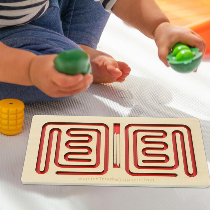 Захоплююча іграшка в стилі Монтессорі, яка сприяє розвитку когнітивних навичок, дрібної моторики і міжпівкульної взаємодії у дітей різного віку. Виготовлена з якісного дерева, відповідає міжнародним стандартам безпеки, що робить гру безпечною та надійною. Для використання необхідно взяти дошку та два стілуси в обидві руки. Після цього почати водити стілусами по рейках. Також можна використовувати дві дошки з різним малюнком. У такому випадку, права і ліва півкуля будуть ще краще взаємодіяти. Переваги: - Покращує взаємодію лівої та правої півкуль. - Розвиває дрібну моторику та координацію рук. - Підвищує концентрацію, пам'ять та увагу. - Покращує мову, читання та письмо. - Прискорює формування нейронних зв'язків та загальний розвиток. Особливості: - Безпечні та екологічно чисті матеріали - Легка у догляді та зберіганні - Ідеальна для дому, реабілітації та освітніх установ Розмір виробу: 15 × 30 × 0.7 см Дошка підійде: дітям від 3 років, дорослим після травм мозку та інсульту, людям з особливостями розвитку, літнім людям. Відмінний вибір для батьків, педагогів та фахівців, які хочуть розвивати дитину через гру.