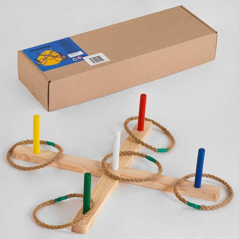 Дерев'яний розбірний кільцекид к-011 від ігруша з 5 джгутиками у коробці