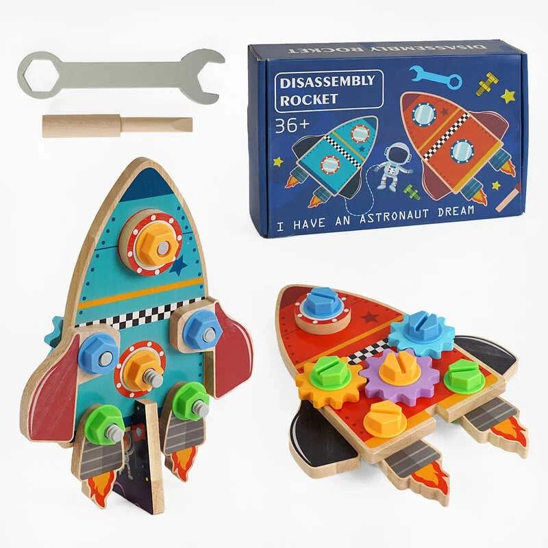 Цікава іграшка для юних дослідників! Бізіборд "Космічна Ракета" – це не просто іграшка, а справжня пригода для маленьких астронавтів! Він поєднує у собі корисні навички, безпеку та веселощі, що робить гру не тільки захоплюючою, а й навчальною. Виготовлений у формі космічної ракети, цей бізнес-борд дозволяє діткам відкрити нові горизонти, розвиваючи дрібну моторику та логічне мислення. Кожна деталь створена з любов'ю та увагою до безпеки, адже наші малюки заслуговують на найкраще! Основні особливості: - Яскравий та привабливий дизайн у формі космічної ракети; - Двостороння основа з різноманітними отворами; - Велика кількість різноманітних ігрових елементів для захоплюючої гри; - Дерев’яна викрутка та гайковий ключ, що сприяють розвитку практичних навичок; - Болтики та шестерні для творчих експериментів.
