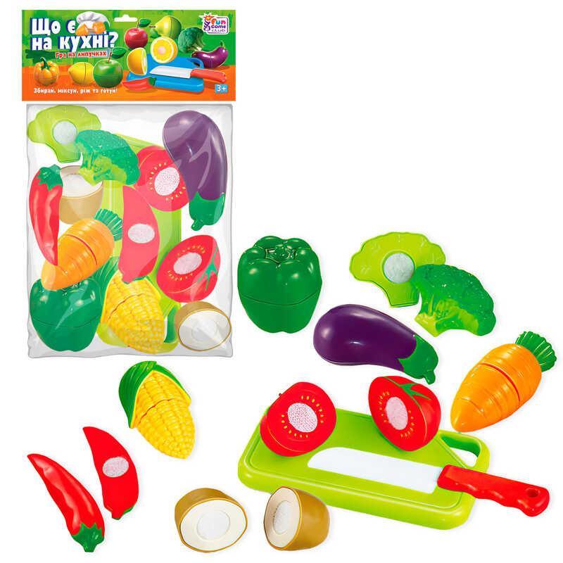 Розвивайте Творчість Вашої Дитини! Фантазія дитини – це ключ до нових відкриттів, цікавих винаходів та креативних ідей у майбутньому. Підтримайте цю важливу рису, запропонувавши їй захоплюючу гру на липучках від ТМ 4FUN Game Club під назвою “Що є на кухні?”. Що входить до набору? - 10 яскравих ігрових елементів у формі овочів та фруктів; - Кожен елемент складається з двох частин, які легко з'єднуються за допомогою липучок; - Обробна дошка та безпечний ніж для ігор; - Всі елементи виконані з міцного та безпечного пластику; - Гра допомагає розвивати дрібну моторику та уяву. Ця гра не тільки розважить, а й навчить вашу дитину основам кулінарії, допоможе вивчити нові слова, сортувати овочі за кольорами та ознайомитися з їхніми корисними властивостями. Оберіть 4FUN Game Club і дозвольте вашій дитині стати маленьким шеф-кухарем!