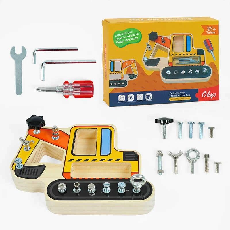 Розвиваючий дерев’яний набір c 35584 (32) з екскаватором, болтами, викруткою та шестигранн...