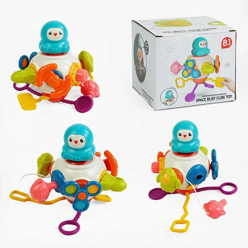 Унікальна бізі-іграшка для розвитку малюків Ця розвивальна брязкальце стане незамінним помічником у пізнавальному розвитку вашого малюка. Вона пропонує безліч можливостей для навчання через гру, допомагаючи діткам розвивати різноманітні навички одночасно. Її компактний розмір робить її ідеальною для прогулянок і подорожей, а яскраві кольори та інтерактивні елементи неодмінно привернуть увагу вашого малюка. Завдяки різноманітним міні-іграм, малюк зможе: - крутити та тягнути елементи; - насолоджуватися приємними звуками; - вчитися відкривати замки за допомогою ключика; - керувати космічною ракетою та спінером; - тренувати логіку та дрібну моторику. Ця іграшка – ідеальний старт для великих відкриттів!