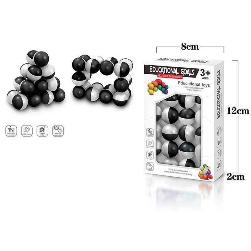 Увлекательная развивающая игрушка для маленьких исследователей! Эта уникальная игрушка выполнена в форме разноцветных шариков, которые надежно соединены между собой. Ваш малыш сможет создавать множество интересных фигурок, а также просто наслаждаться вращением шариков в руках, используя их как антистресс. Игра с этой чудесной забавкой не только развивает когнитивные способности ребенка, но и способствует совершенствованию мелкой моторики и координации движений. Это идеальный способ совместить удовольствие с обучением! Основные характеристики: - Игрушка выполнена в форме разноцветных шариков, соединенных между собой; - Гармоничная и яркая цветовая гамма для развития зрения; - Изготовлено из безопасного пластика; - Развивает мелкую моторику детских ручек; - Способствует улучшению когнитивных навыков ребенка.
