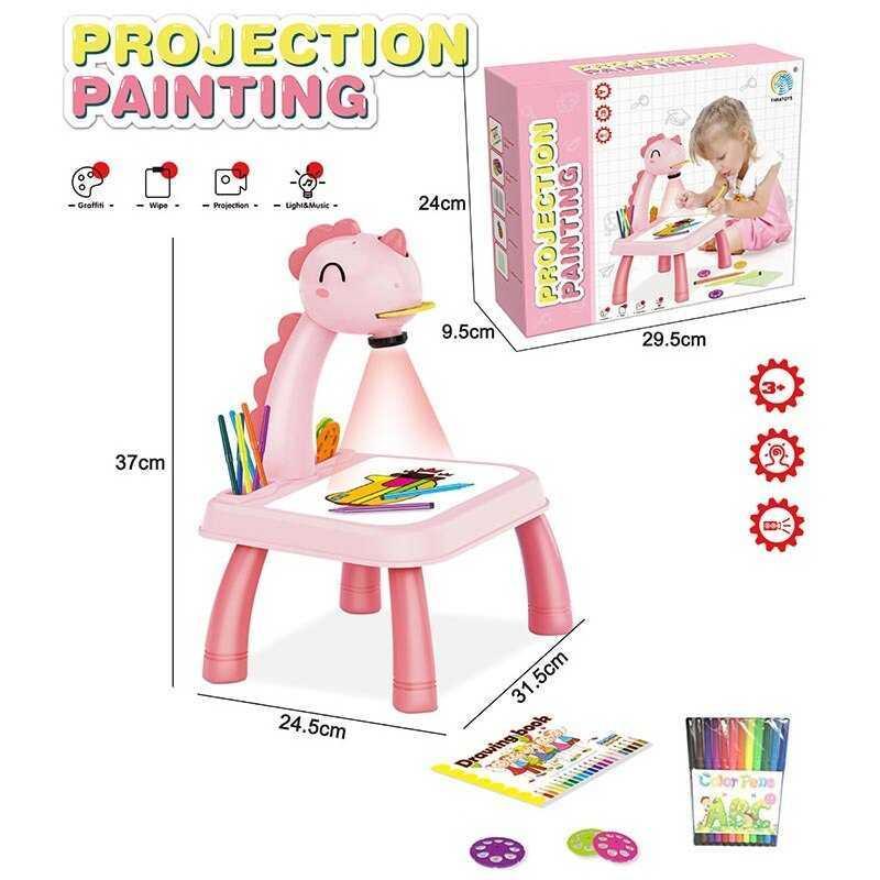 Проекционный столик "Динозаврик" Этот чудесный проекционный столик станет настоящей находкой для маленьких художников! Благодаря встроенному проектору ваш ребенок сможет легко и весело рисовать, обводя изображения, которые проецируются на поверхность столика. С набором "Динозаврик" малыш получает не только развлечение, но и возможность развивать свои творческие способности. Особенности набора: - Включает 3 сменных диска с 24 различными рисунками, что обеспечивает безграничное количество творческих идей; - Проектор работает от 3 батареек типа АА (не входят в комплект); - Имеет 2 режима работы: с мелодией и без, кнопка включения расположена сверху "динозаврика"; - В комплекте 12 ярких фломастеров и альбом для рисования размером 14 х 12 см; - Также есть салфетка для легкого стирания рисунков; - Проектор в форме веселого зверька позволяет менять рисунки простым вращением диска; - Компактный размер столика делает его идеальным для игры дома и во время поездок; - Яркий дизайн и функциональность помогают ребенку развивать моторику, воображение и художественные навыки. С "Динозавриком" рисование станет не только увлекательным, но и полезным занятием для вашего ребенка!