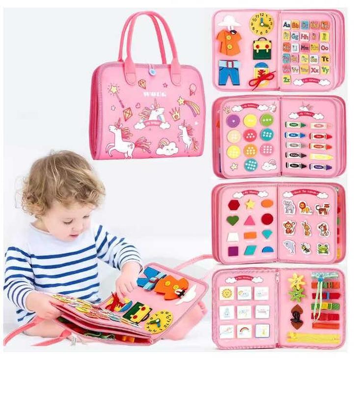 Розвиваюча логічна папка для дітей Ця яскрава та зручна логічна папка C 73101 створена для комплексного розвитку вашої дитини. Вона виготовлена з міцного цупкого фетру й оснащена ручками для перенесення та застібкою для безпечного зберігання. Папка містить сторінки з різними навчальними та інтерактивними елементами, які легко відділяються за допомогою блискавок. - Фетрові елементи на липучках для розвитку моторики та логіки - Різноманітні застібки для тренування навичок одягання - Іграшковий годинник для вивчення часу - Цифри, англійська абетка, кольори, форми, тварини та погодні символи - Розміри: 28х4х21 см Ця логічна папка ідеально підходить для навчання та цікавої гри вдома, у подорожах чи на прогулянках, допомагаючи дитині розвивати дрібну моторику, пам’ять та логічне мислення.